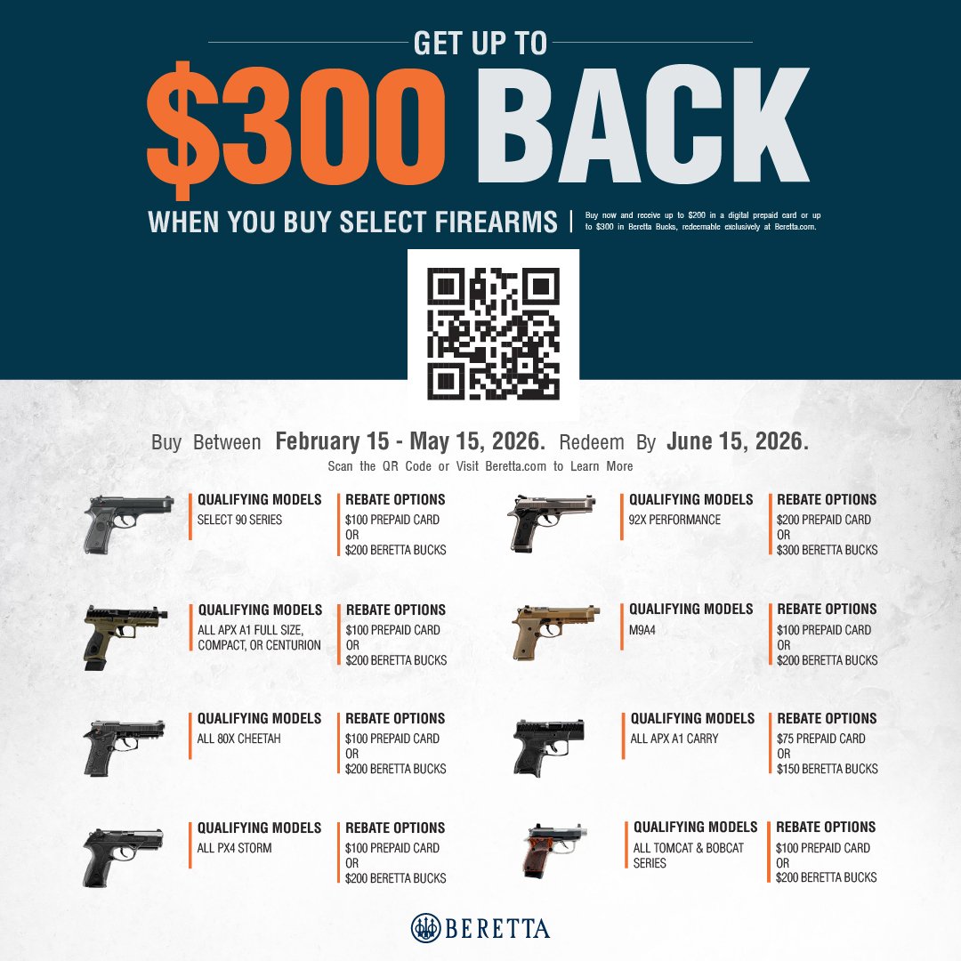 For more information and terms & conditions, please visit: https://www.beretta.com/en-us/rebates