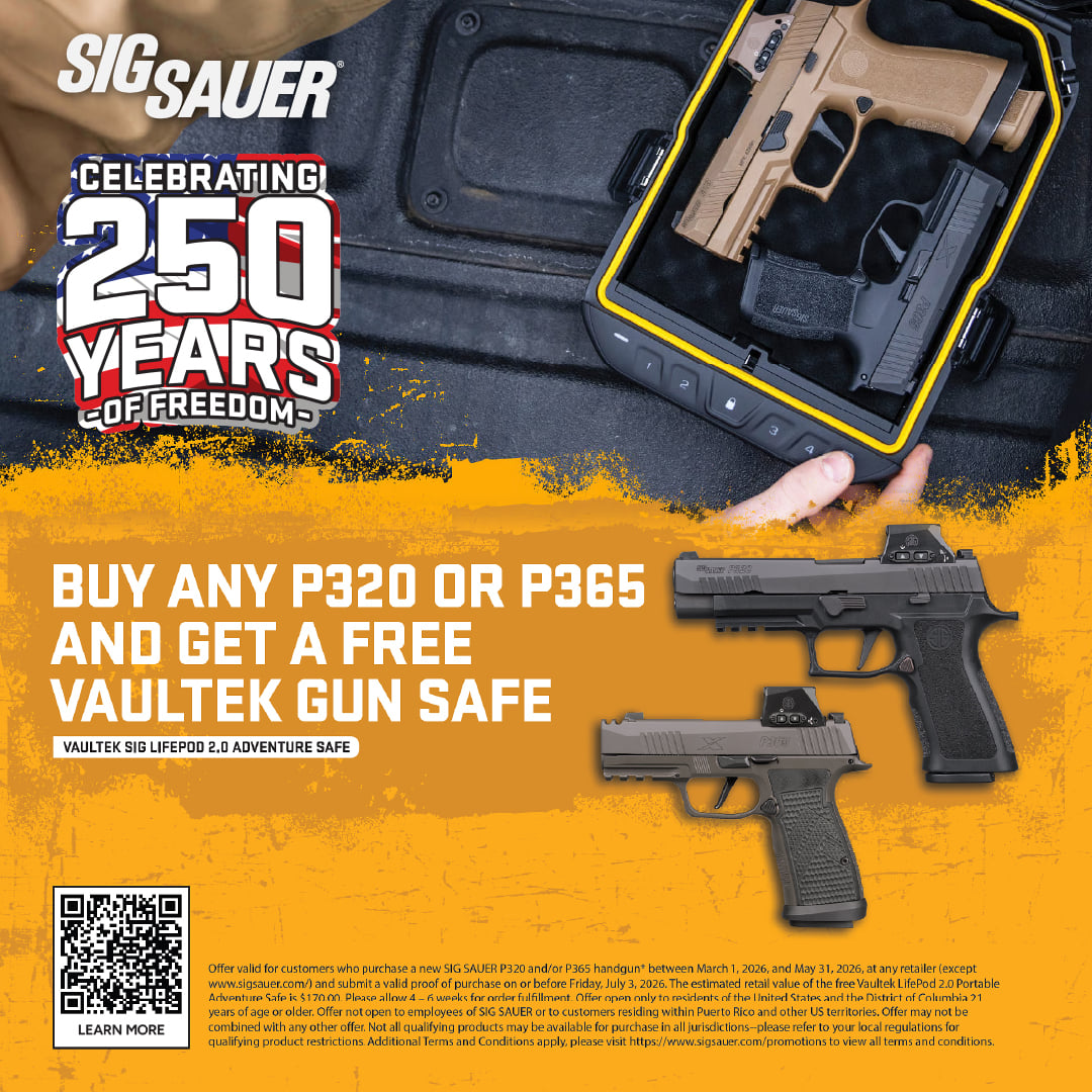 Purchase a Select, NEW Sig Sauer P320 or P365 Pistol and Receive a FREE Vaultek Gun Safe!